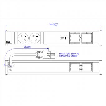 CONI 2xUTE 1xUSB C 60W 2xCM 0,2m GST18
