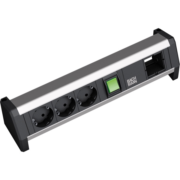 DESK 1, Steckdoseneinheiten mit Leerfeldern, Schalter beleuchtet