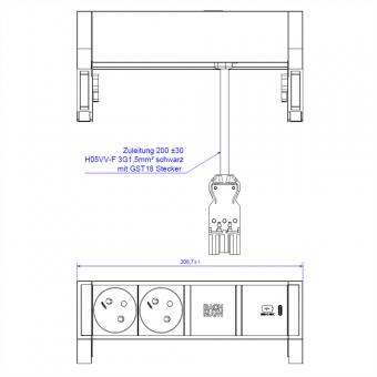 DESK2 2xUTE 1xUSB C 30W 0,2m GST18 INOX