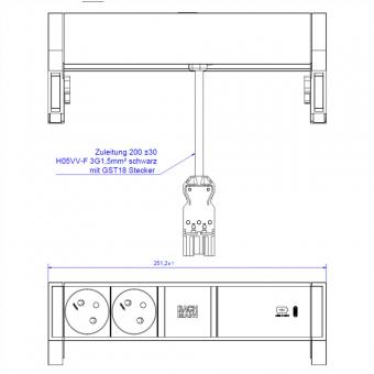 DESK2 2xUTE 1xUSB C 60W 0,2m GST18 INOX