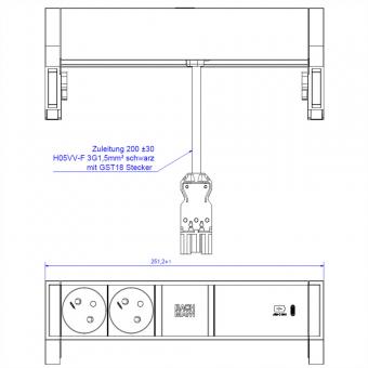 DESK2 2xUTE 1xUSB C 60W 0,2m GST18 RAL9005