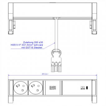 DESK2 2xUTE 1xUSB C 60W 0,2m GST18 RAL9010