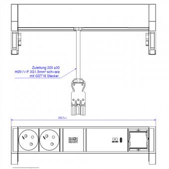 DESK2 2xUTE 1xUSB C 60W 1xCM 0,2m GST18 INOX