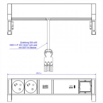 DESK2 2xUTE 1xUSB C 60W 1xCM 0,2m GST18 RAL9005