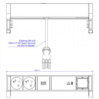 DESK2 2xUTE 1xUSB C 60W 1xCM 0,2m GST18 RAL9010