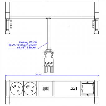 DESK2 ALU BLACK 2xUTE 1xCM 1xUSBC 60W 0,2m GST18