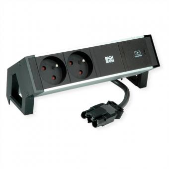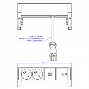 DESK2 ALU BLACK 2xUTE 1xUSBC 30W 0,2m GST18