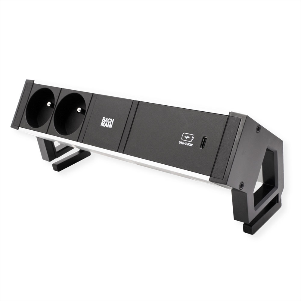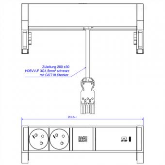 DESK2 ALU BLACK 2xUTE 1xUSBC 60W 0,2m GST18