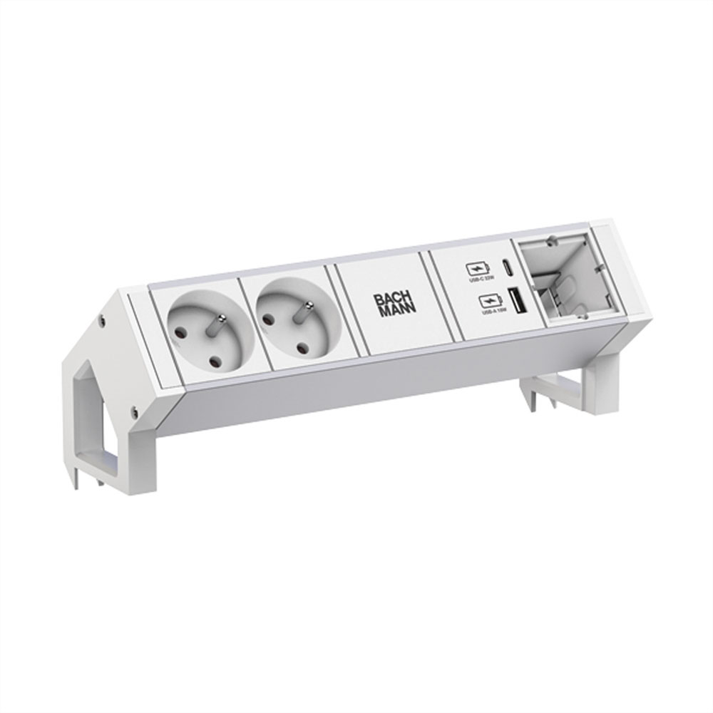 DESK2 ALU WHITE 2xUTE 1xCM 1xUSB A/C 22W 0,2m GST18