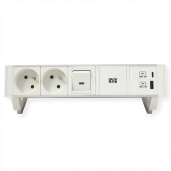 DESK2 ALU WHITE 2xUTE 1xUSB A/C 22W 1xSchalter 0,2m