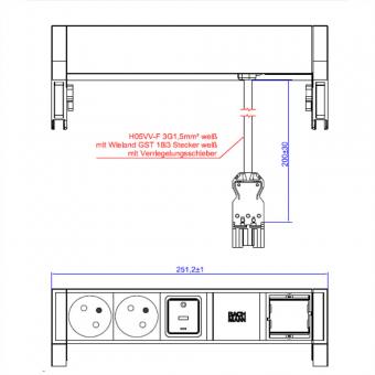 DESK2 white 2xUTE 1xSchalter 1xCM 0,2m GST18 RAL9010