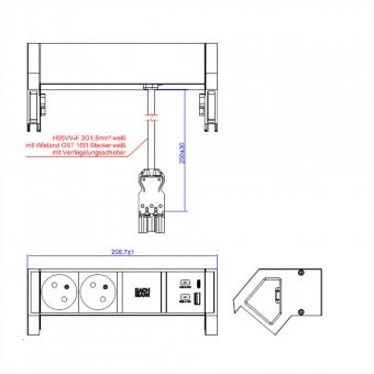 DESK2 white 2xUTE 1xUSB A/C 22W 0,2m GST18