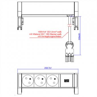DESK2 white 3xUTE 0,2m GST18 RAL9010