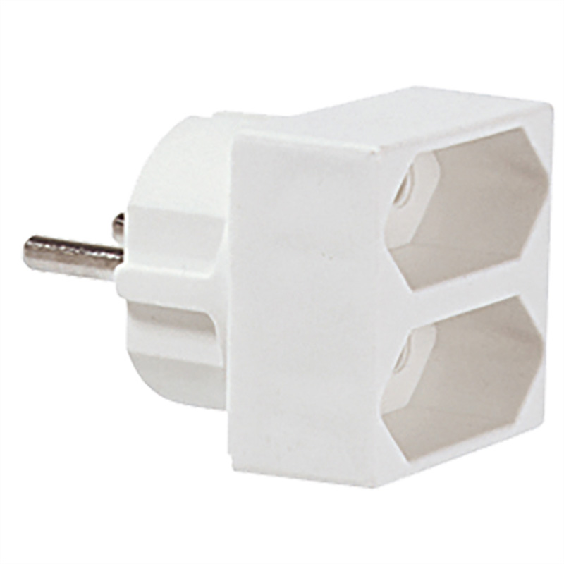 Euro-Doppelstecker, 1x Schutzkontakt-Stecker, 2x Euro-Buchse