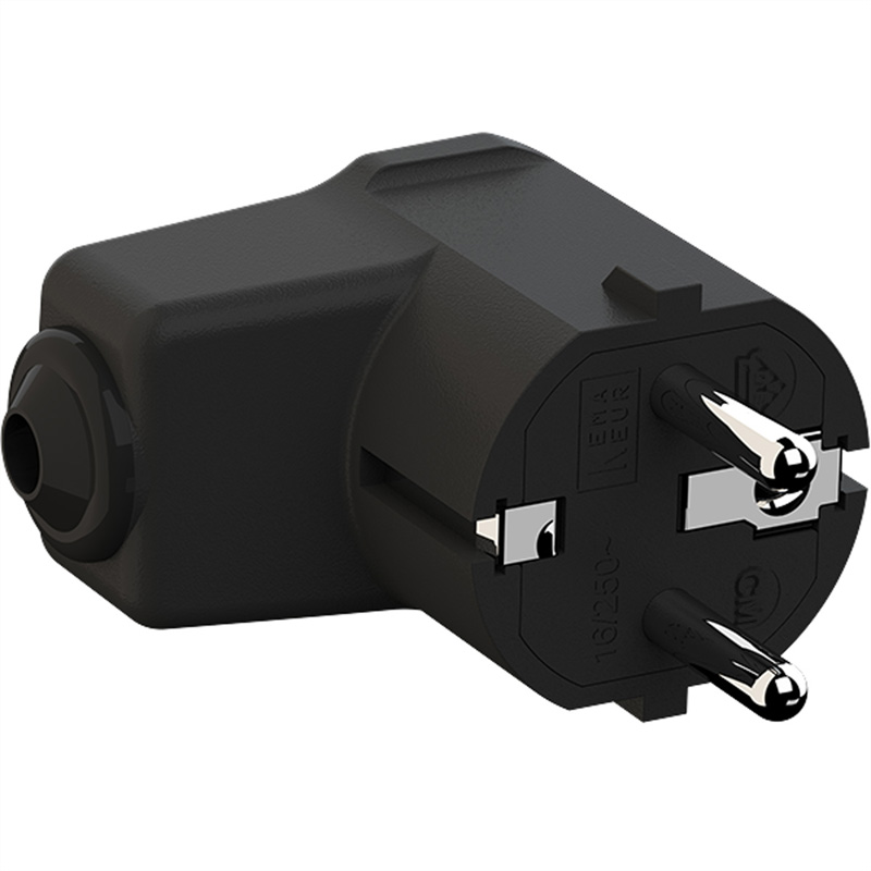 Montage-Winkelstecker schwarz, CEE 7/7 2-polig mit Schutzkontakt