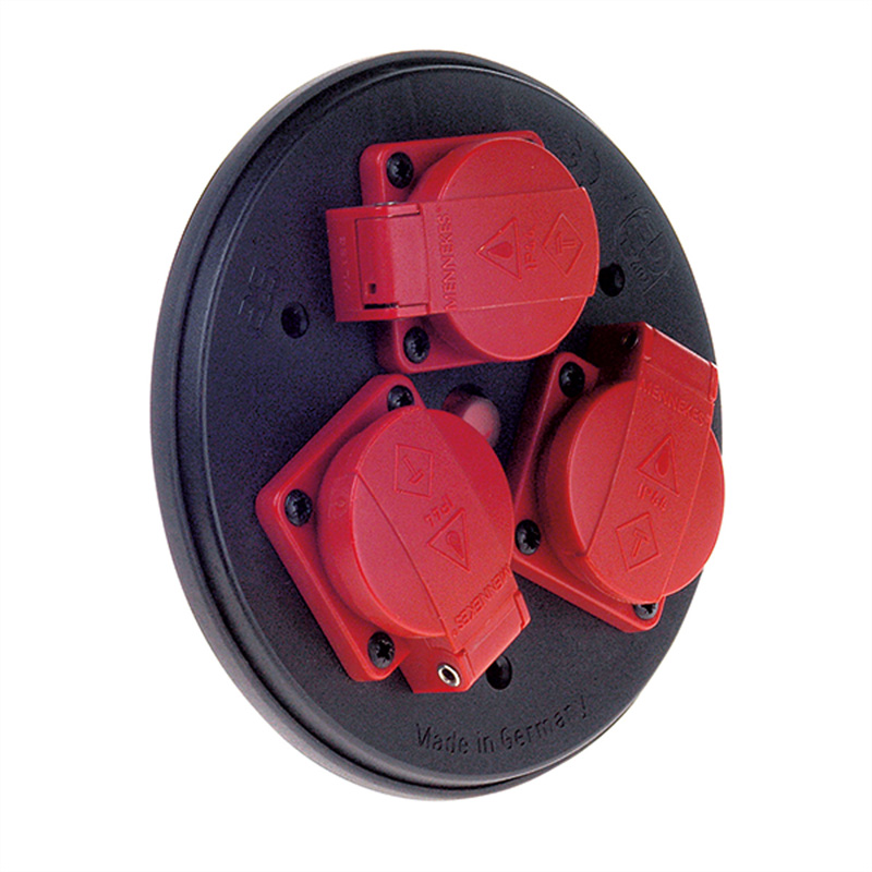 Steckdoseneinsatz 3fach m.Deck, Thermoschutz, rot