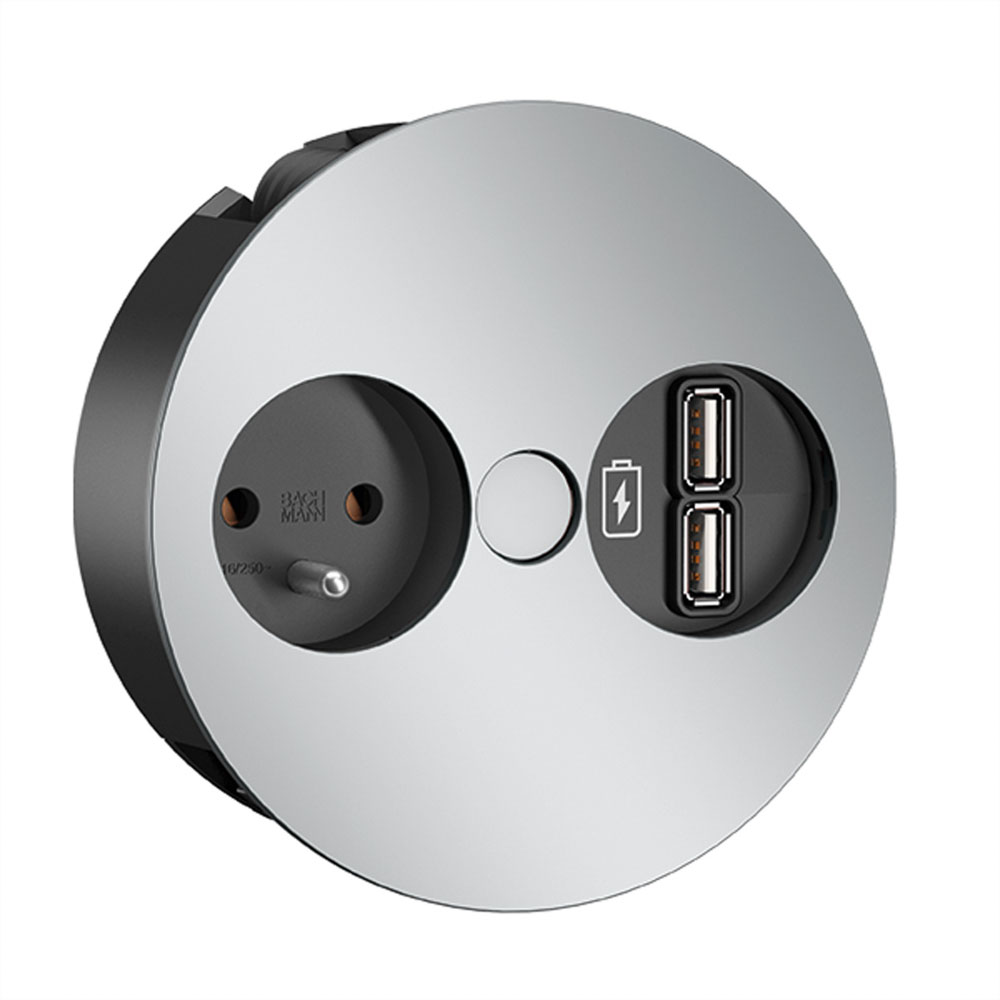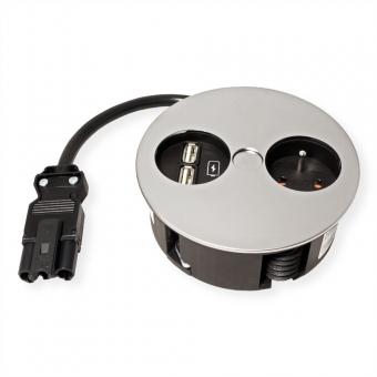TWIST 1xUTE 1xUSB Charger Chrom matt 0,2m GST18, chrom, 0,2m