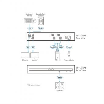 CS1142DP4 Commutateur KVM sécurisé DisplayPort à 2 ports USB et double affi