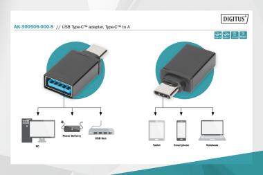 USB Type-C adapter, type C to A M/F, 3A, 5GB, 3.0 Version, bl