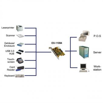 EX-11094 Carte PCI Express, 4x USB 3.0 externe