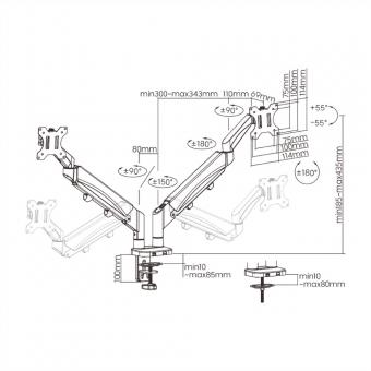 Bras double LCD, fixation sur bureau, vérin à gaz, 6 articulations