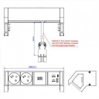 DESK2 ALU BLACK 2xUTE 1xUSB A&C 22W 0,2m GST18