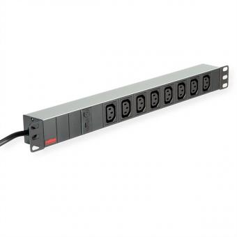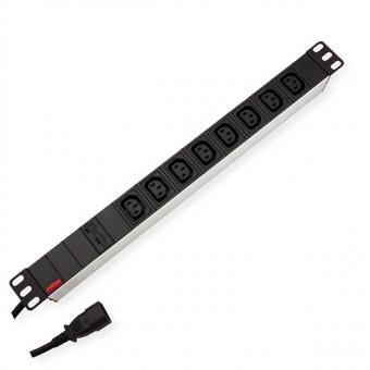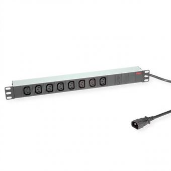 Multiprise 19 pouces, 8 prises C13 - C14 M, fusible 10A, Aluminium, 2m