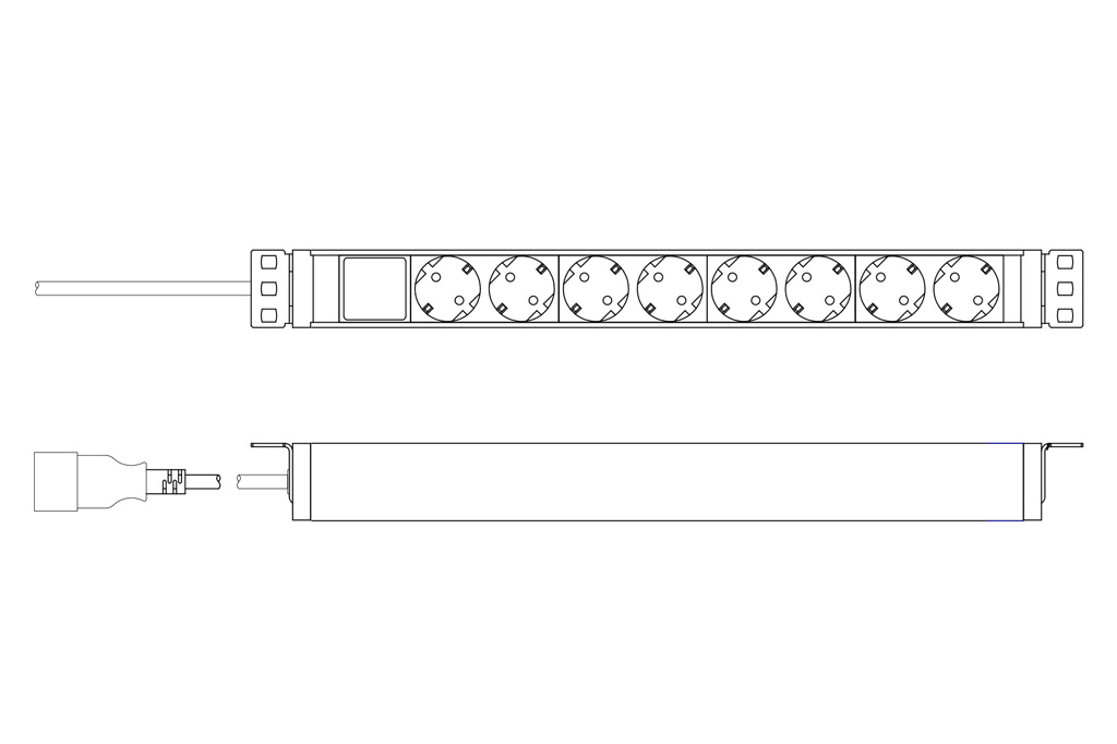 Multiprise avec profilé en aluminium, 8 prises à  contact de protection, câble d'alimentation de 2m, fiche IEC C20