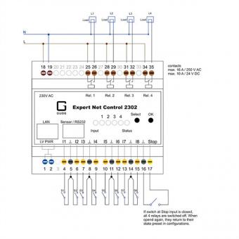 2302-1 EPC NET 4x RelaisOut, 8 entrées, 1 port capteur, rail DIN