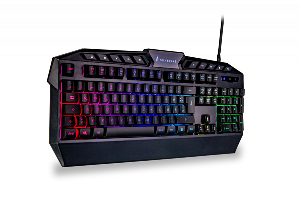 Adopte la configuration que tu souhaites grâce au clavier gaming complet KingPin de SureFire et ses 10 touches multimédias, ses 12 touches de fonction raccourci, ses 25 touches anti-ghosting et son éclairage RVB.