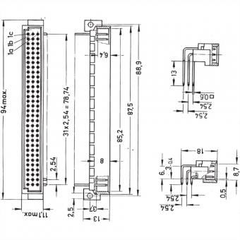 Connecteur de type C, EN 60603, DIN 41612, femelle, 64 contacts, wire-wrap, 13mm
