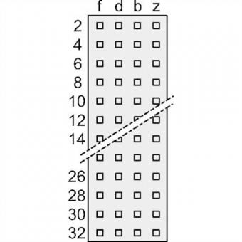 Connecteur de type G, EN 60603, DIN 41612, mâle, 64 contacts, broches à souder, 2.9mm
