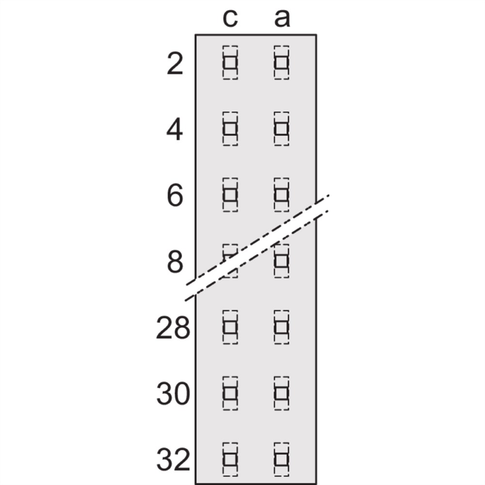 Connecteur type D, EN 60603, DIN 41612, femelle, 32 contacts, œillets à souder, 5.5mm