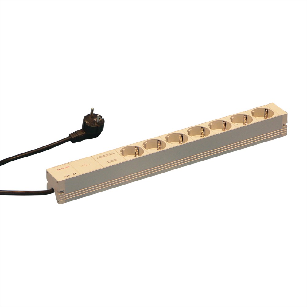 Bâti de prises, 2P+T ALLEMAND, 7 prises, 19-pouces, avec filtre de suppression de réseau