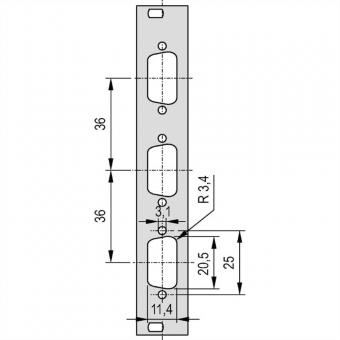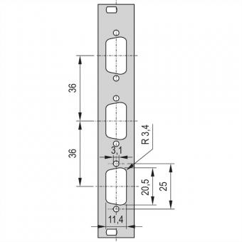 Face avant 19-pouces avec découpe Sub-D, 1x9 broches, 3U, 4 F, 2,5mm, Al, RAL 7035