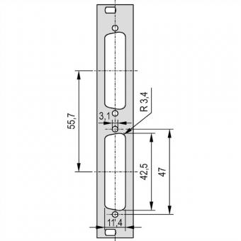 Face avant 19-pouces avec découpe Sub-D, 2x25 pôles, 3U, 4 F, 2,5mm, Al, RAL 7035