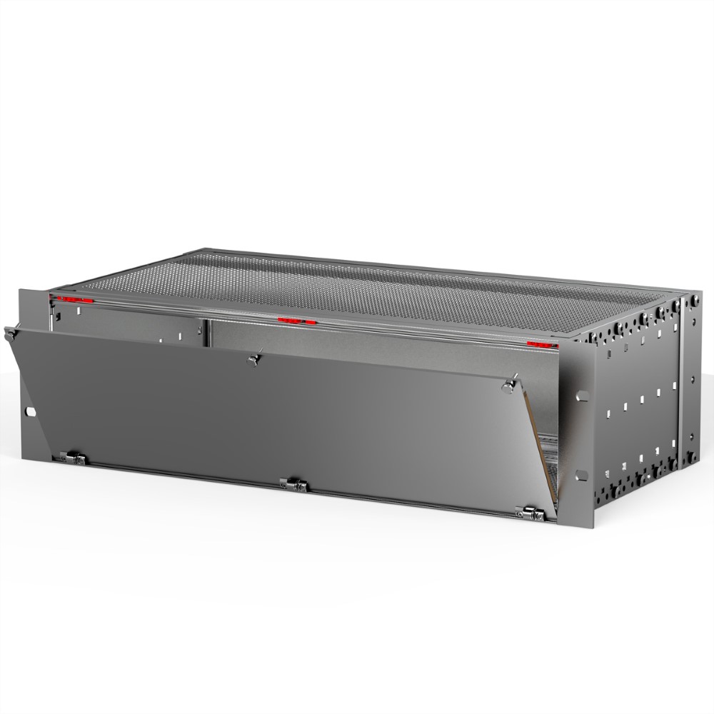 Kit de face avant, blindée, avec charnières en bas, 4 U, 84 HP, 2,5mm, alu, anodisé avant, conducteur arrière