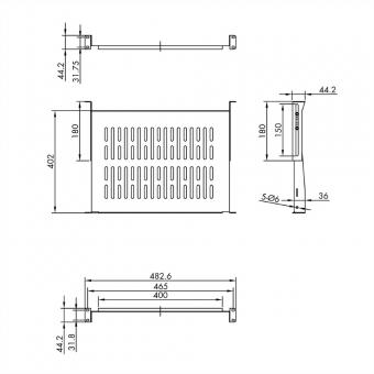 Etagère 19-pouces, 485 x 400mm, max. 25kg, noir
