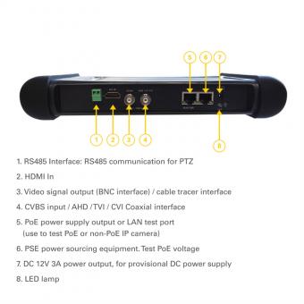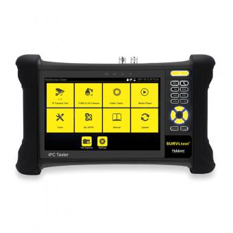 SURVLtest -Multifunction CCTV Tester est un testeur d'installation et de dépannage pour les systèmes de caméras CCTV numériques / IP, coaxiaux et analogiques HD. L'écran de 7-pouces permet l'affichage de caméras réseau HD et de caméras analogiques avec une résolution de 1920 x 1200.