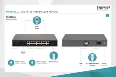 Commutateur PoE 16+2 ports 10/100/1000Mbit/s + 2 SFP Gigabit