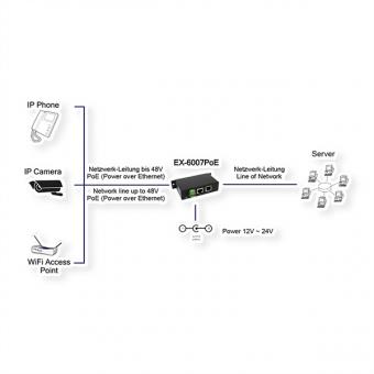 EX-6007PoE Injecteur PoE Gigabit métallique, avec adaptateur secteur