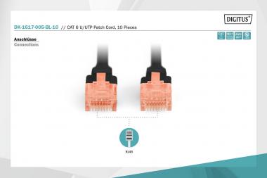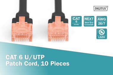 CAT 6 U-UTP patch cord, Cu, LSZH AWG 26/7, length 0.5m, 10 pieces, color black