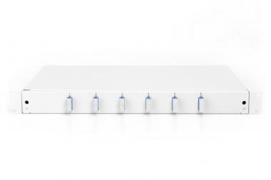 FO splice box, 1U, equipped, 6x SC DX, OS2 incl. splice cassette, colored pigtails, couplers