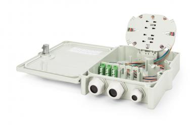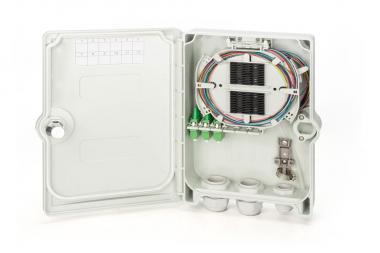 Boîtier de raccordement FTTH/FTTB, équipé, OS2, 12 fibres, LC/APC