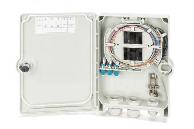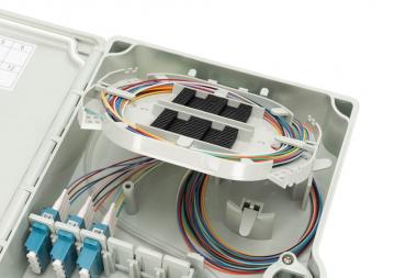 Boîtier de raccordement FTTH/FTTB, équipé, OS2, 12 fibres, LC/PC